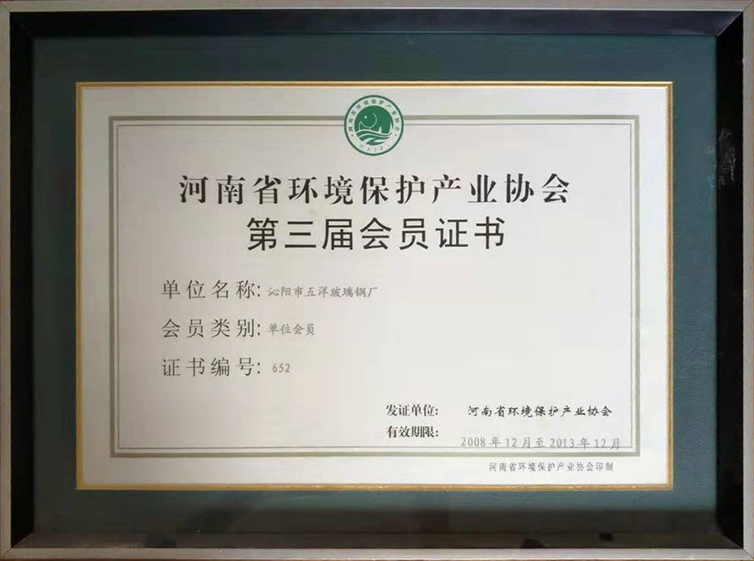 河南省環(huán)境保護(hù)產(chǎn)業(yè)協(xié)會(huì)第三屆會(huì)員證書(shū)