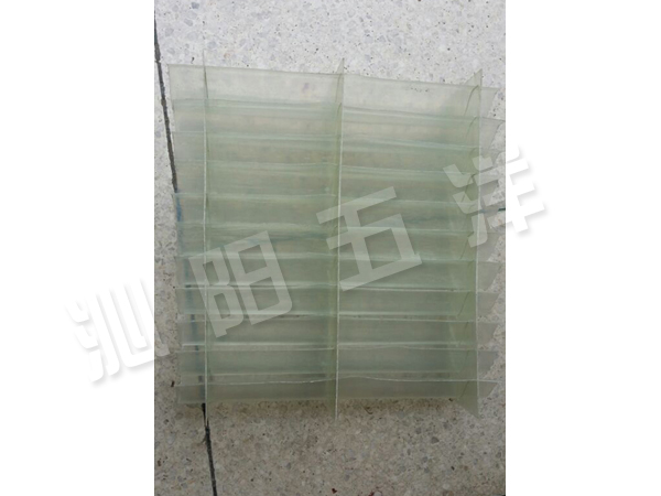 收水器片采用FRP材料擠壓成型,在收水器的片材中增加了進(jìn)口碳黑作為添加劑大大提高了片材的抗紫外線(xiàn)和抗老化性能。該收水器具有收水效率高、氣流阻力小、強(qiáng)度高、不變形、安裝維修方便、使用壽命長(zhǎng)、阻燃性好等優(yōu)點(diǎn)。
